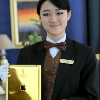 El hotel Burj Al Arab de Dubai (Emiratos Árabes) da a sus huéspedes la oportunidad de disfrutar de un iPad de oro de 24 quilates que podrán usar como «conserje virtual» durante su estancia con información y amplia gama de servicios sobre el establecimiento.